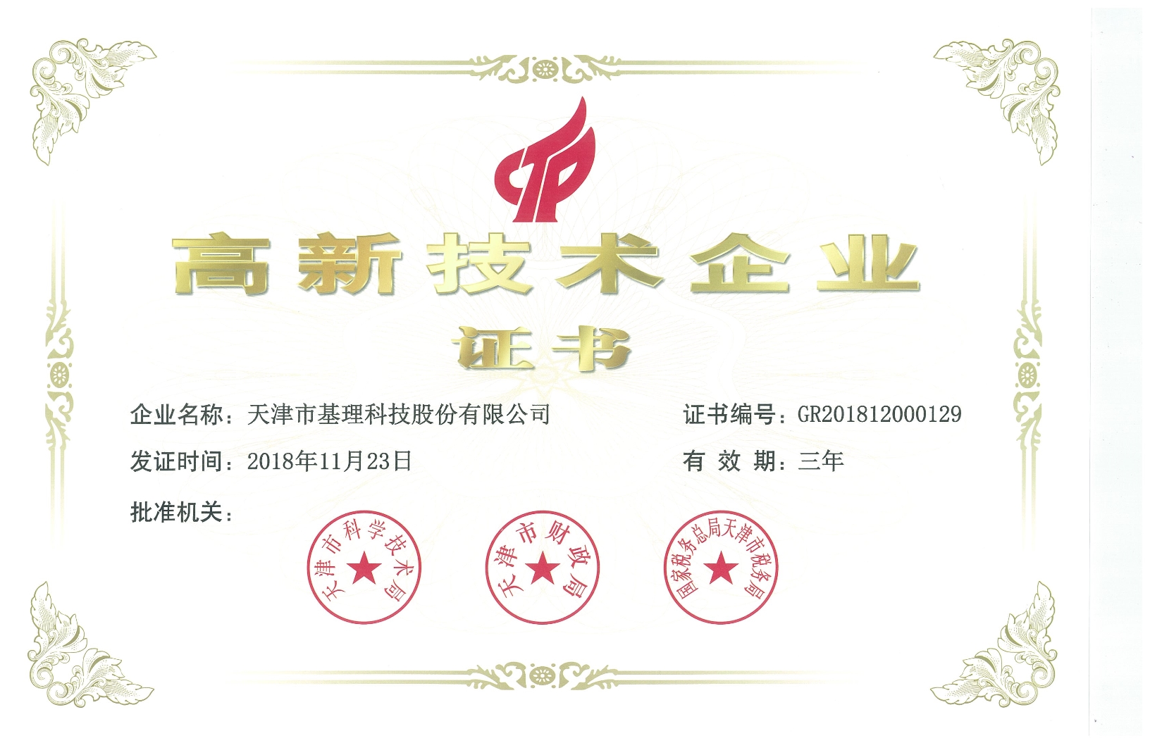 高新技術(shù)企業(yè)證書